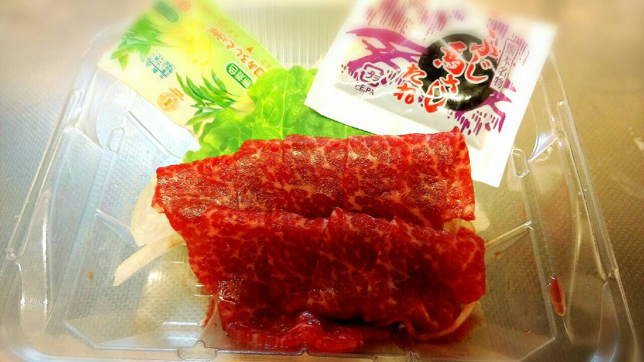 少し前にたまたま見かけて、躊躇して一度目は買わず。 別の日に通ったときには、売り切れていて。 三度目の正直で、馬刺しの霜降りを購入しました!